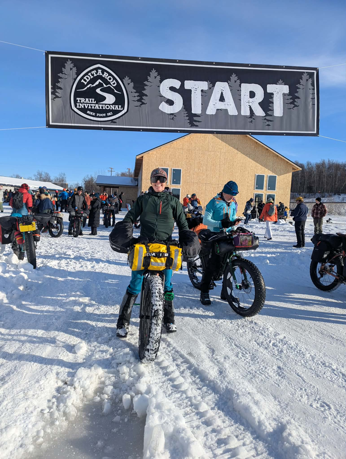 Newly crowned 350 bike women’s champion Ginny Robbins of Victor, Idaho, may be an ITI rookie, but she’s no stranger to tough events. She’s finished the Drift five times (across multiple disciplines) and completed a Fat Pursuit. Ginny signed up for ITI chasing northern lights, big views, camaraderie, and the chance to experience Alaska’s lodges and communities. By all accounts, she found all of it. A self-proclaimed “puffy coat” and “pogie snack” enthusiast, this year’s deep cold likely made her gear preferences look like smart decisions. What an incredible ride.