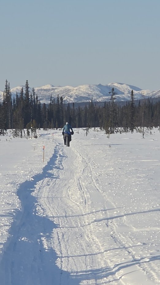 Further back down the trail, after approximately 8 hours rest at Old Woman Cabin, Gavan left around 8 am AK time to head for the coast, where he will soon get some much needed rest in a warm place as well as the world famous pizza. When talking about Gavan, the same words keep being said, “He’s the best of us.” Meaning, if anyone can do it, Gavan can. While it is true that he is very good at walking fast for long periods of time, this constant compliment is all encompassing to who he is. He is still raising money for local communities affected by the storm last summer, follow the link to donate: ITI Intrepid Path: https://www.givengain.com/campaign/iditarod-trail-invitational He also builds up those around him in a way only Gavan can, genuinely supporting and encouraging women out on the trail, and if you are lucky enough to be in his orbit, he’s cheering you on, too. We are all watching him hit these milestones on the trail, still it must be lonely out there, now that the dogs have gone through and the bikes have moved on. I hope he knows we are rooting for him to do what he came here to do, on his terms.