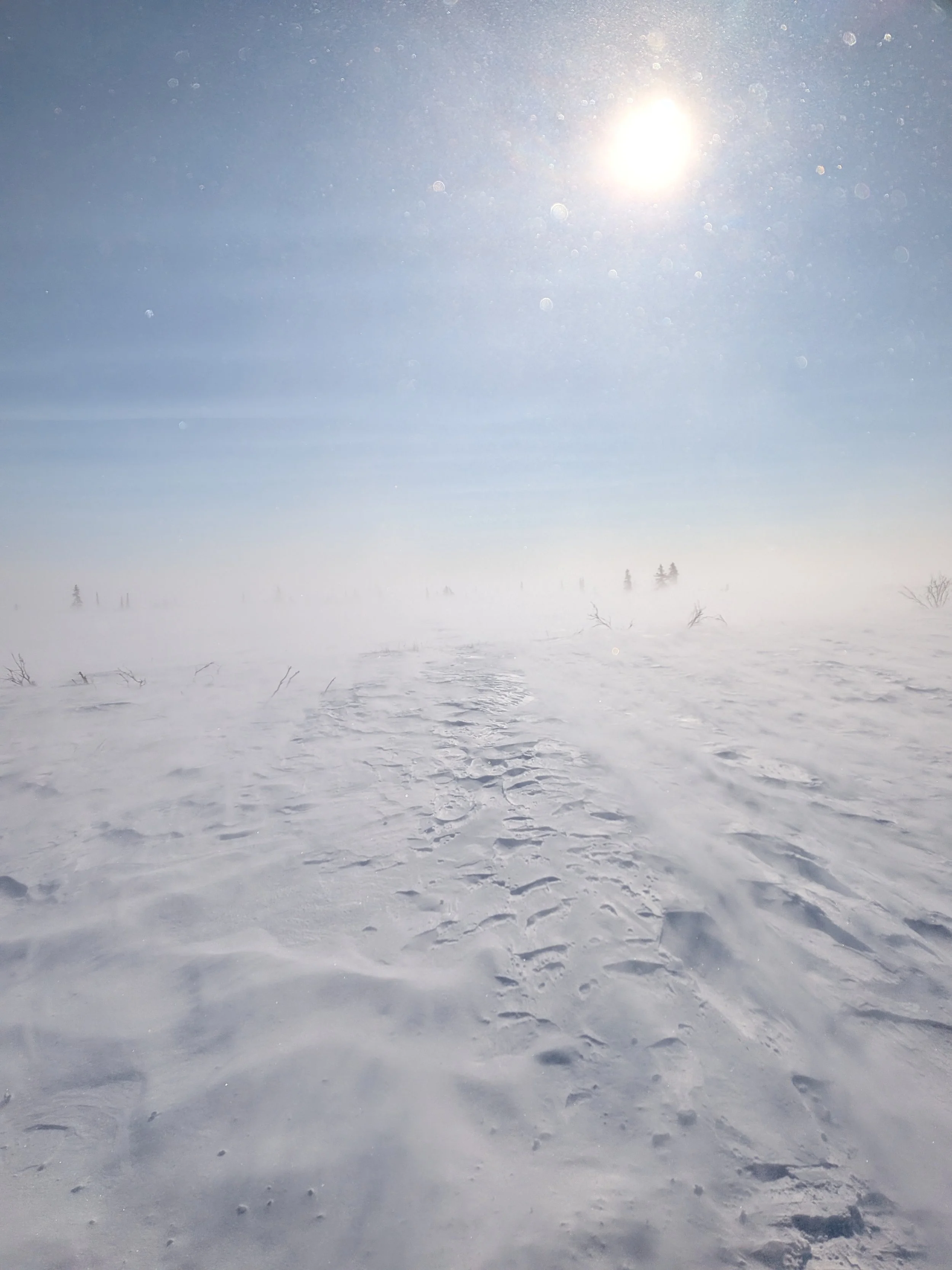 The cold deepened overnight, wind chills dropping to -50. At that point, every exposed inch of skin becomes a negotiation. Every pause has consequences. And then there are the blowholes—those sudden, violent bursts of wind that fall off the mountains like invisible avalanches. One moment calm, the next a sideways punch.