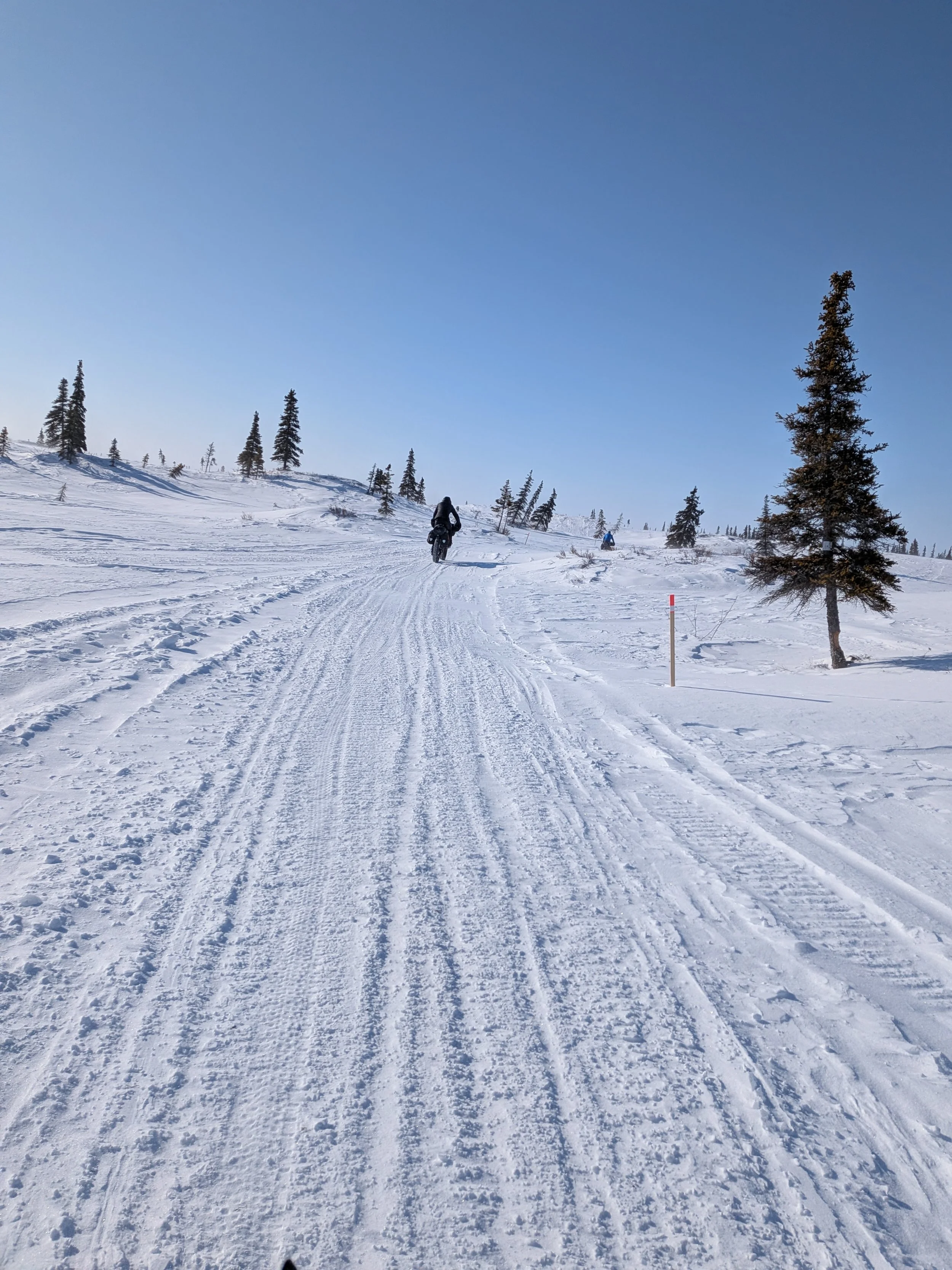 For the front group, the finish line likely feels as close as it does far… The bikers now have five days left and less than 100 miles to go—a distance that looks manageable if they continue moving well, but in an Alaskan winter, nothing comes easy. Every mile still has to be negotiated, earned, respected.